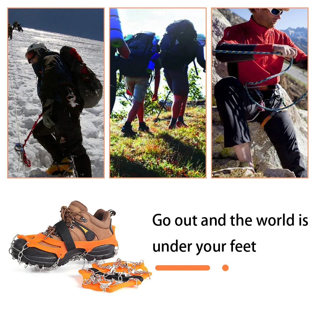 The snow climbing shoe spike is suitable for many occasions, such as walking or hiking on snow, ice, mud, moist ground.